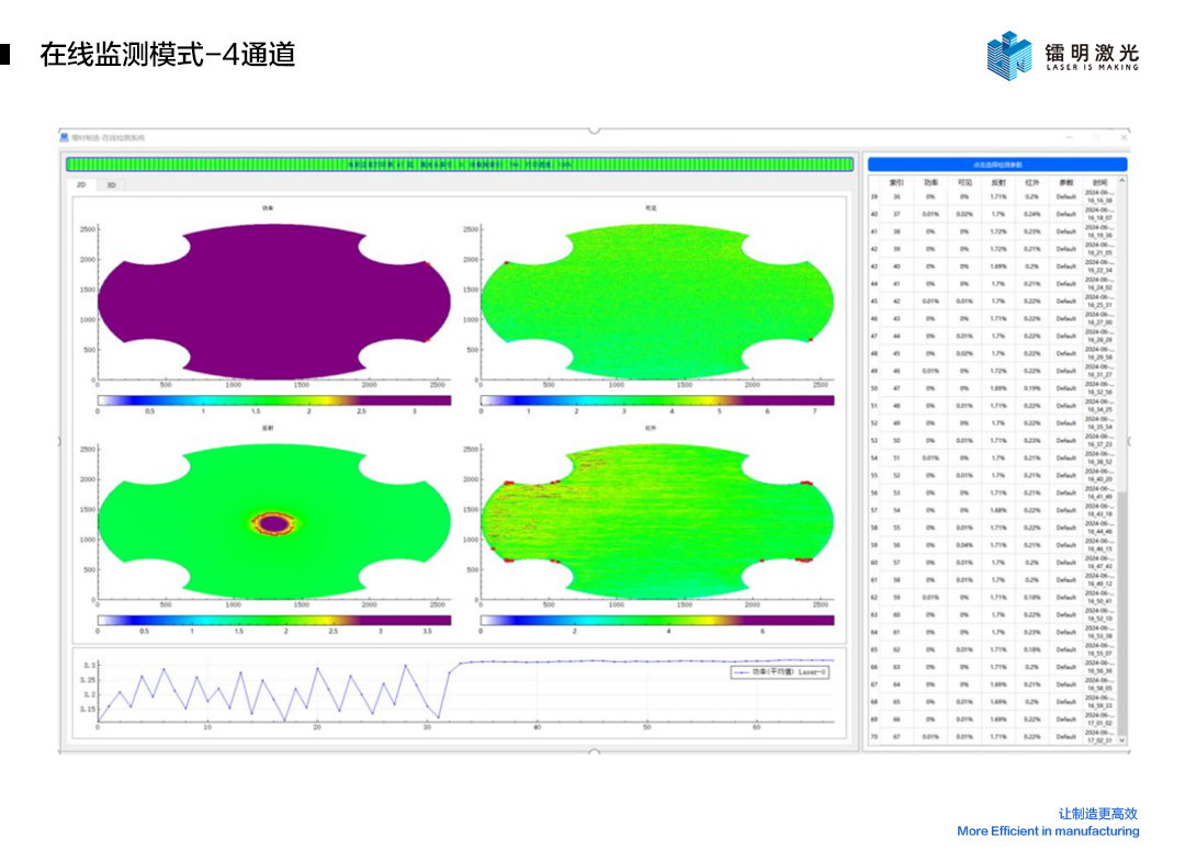 实时监控:打印过程中可实时监控激光能量、反射激光能量、金属蒸汽、以及熔池光辐射,捕捉熔池实时状态数据,并通过 2D、3D 界面实时显示。