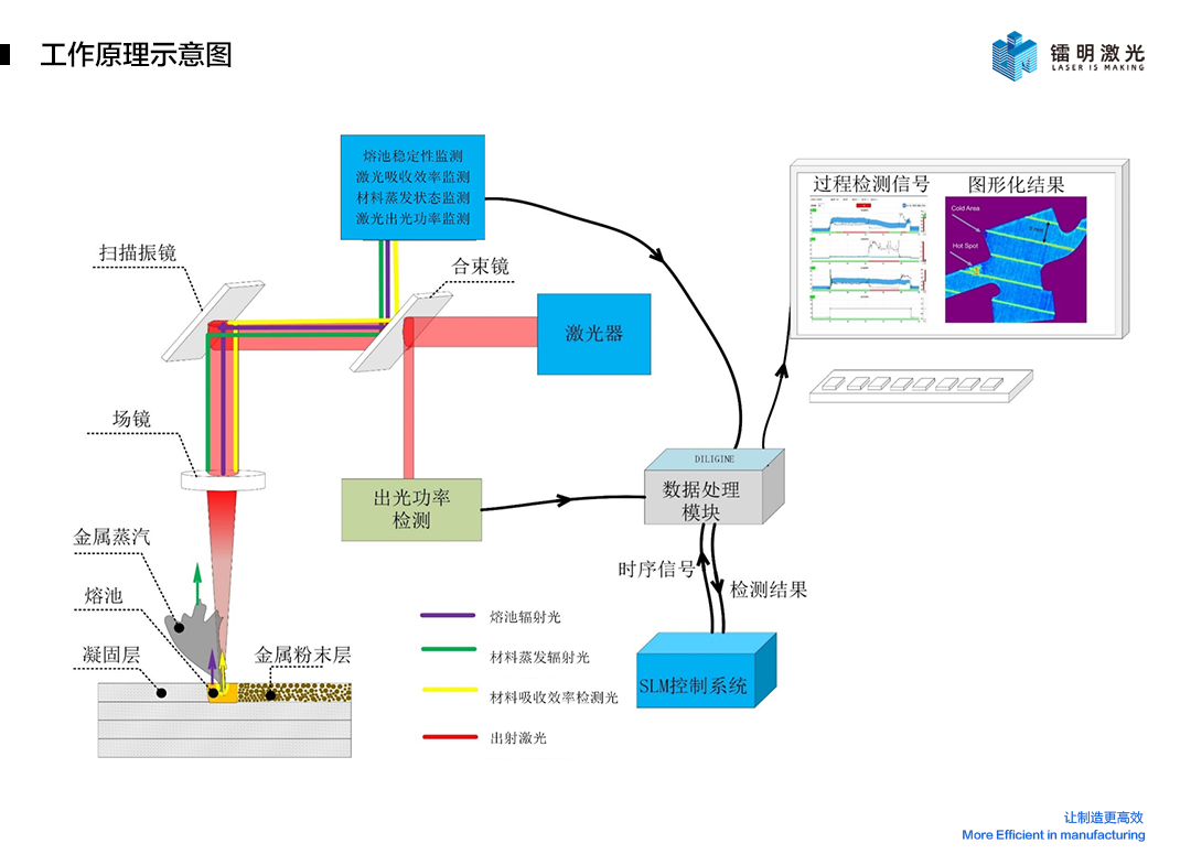 镭明激光的激光增材过程检测系统已经过实践验证,不仅解决了打印过程中观测难、监控难问题,还有助于提高工艺稳定性、增强打印质量可靠性,我司LiM-X系列激光选区熔化设备均可选配该系统。